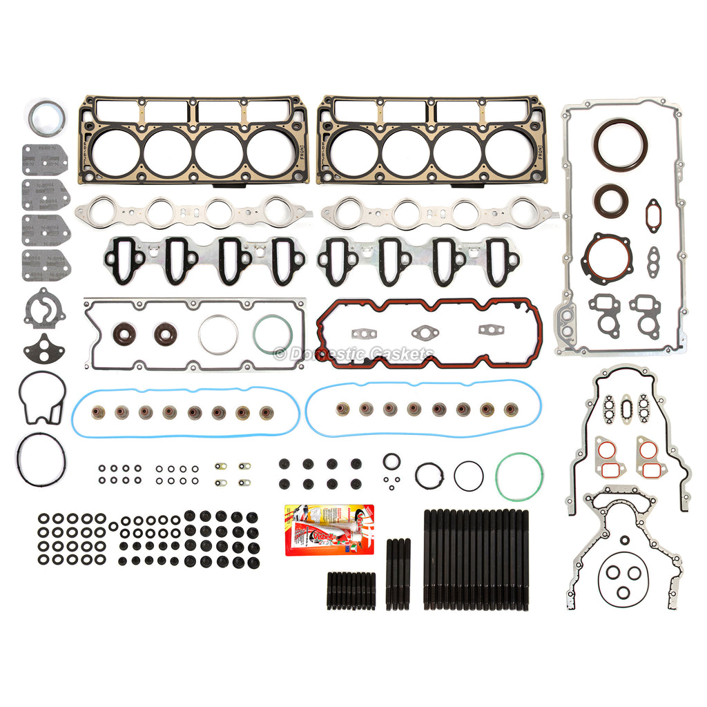 Full Gasket Set Head Studs Fit 04-14 Chevrolet Cadillac GMC Buick 4.8 & 5.3 OHV. This full gasket set and head bolts is just what you need to keep your car in good running order. The full gasket set and head bolts that you will receive in this kit is a high quality gasket that the dealers and rebuilding shops use everyday. So do not settle for lesser quality parts when it comes to engine repair. These full gasket set and head boltss are designed for the professional installer. It does not come with any installation instructions. If you do not have a service manual, please consult a professional mechanic prior to installing this full gasket set and head bolts.