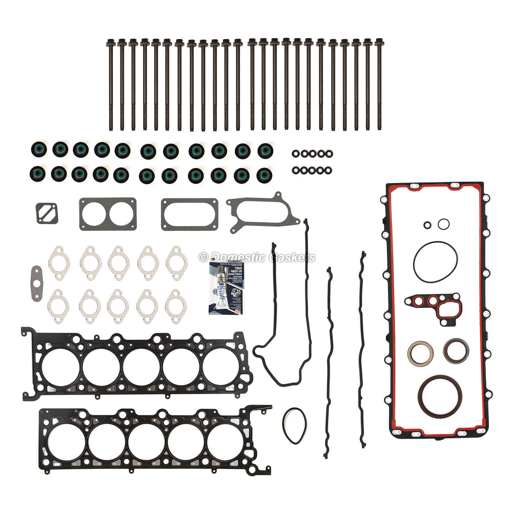 Full Gasket Set Head Bolts Fit 97-02 Ford F250 F350 E350 Excursion 6.8L SOHC. This full gasket set and head bolts is just what you need to keep your car in good running order. The full gasket set and head bolts that you will receive in this kit is a high quality gasket that the dealers and rebuilding shops use everyday. So do not settle for lesser quality parts when it comes to engine repair. These full gasket set and head boltss are designed for the professional installer. It does not come with any installation instructions. If you do not have a service manual, please consult a professional mechanic prior to installing this full gasket set and head bolts.