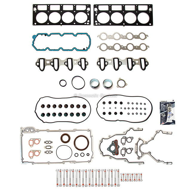 Full Gasket Set Head Bolts Fit Cadillac Escalade Chevrolet Sierra 1500 GMC 6.0L. This full gasket set and head bolts is just what you need to keep your car in good running order. The full gasket set and head bolts that you will receive in this kit is a high quality gasket that the dealers and rebuilding shops use everyday. So do not settle for lesser quality parts when it comes to engine repair. These full gasket set and head boltss are designed for the professional installer. It does not come with any installation instructions. If you do not have a service manual, please consult a professional mechanic prior to installing this full gasket set and head bolts.