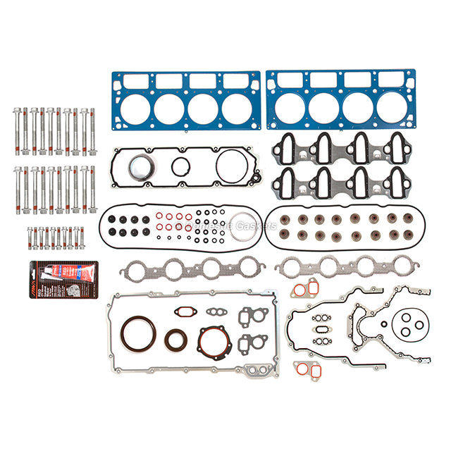Fits 08-11 Chevrolet Hummer H3T GMC Savana 4.8L 5.3L OHV Full Gasket Set Bolts. This full gasket set and head bolts is just what you need to keep your car in good running order. The full gasket set and head bolts that you will receive in this kit is a high quality gasket that the dealers and rebuilding shops use everyday. So do not settle for lesser quality parts when it comes to engine repair. These full gasket set and head boltss are designed for the professional installer. It does not come with any installation instructions. If you do not have a service manual, please consult a professional mechanic prior to installing this full gasket set and head bolts.