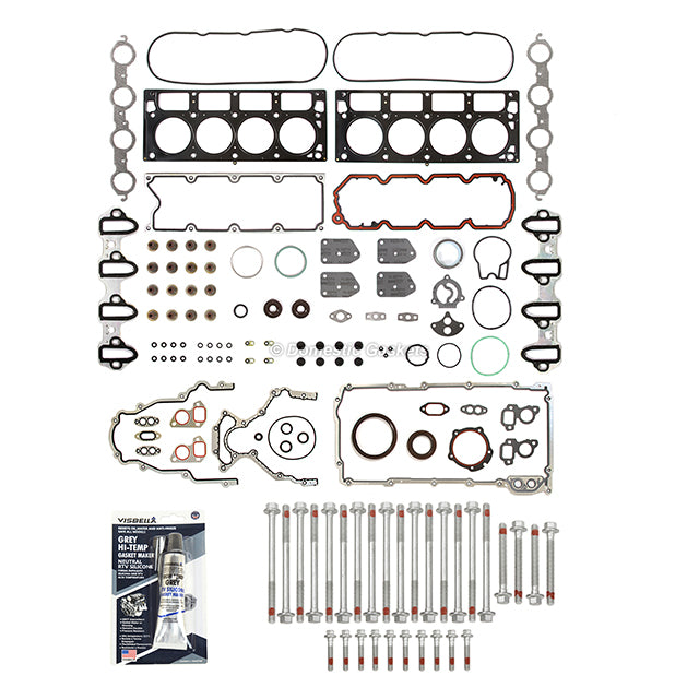 Fits 02-04 Chevrolet GMC Buick Cadillac 5.3L Full Gasket Set Bolts(metal intake). This full gasket set and head bolts is just what you need to keep your car in good running order. The full gasket set and head bolts that you will receive in this kit is a high quality gasket that the dealers and rebuilding shops use everyday. So do not settle for lesser quality parts when it comes to engine repair. These full gasket set and head boltss are designed for the professional installer. It does not come with any installation instructions. If you do not have a service manual, please consult a professional mechanic prior to installing this full gasket set and head bolts.