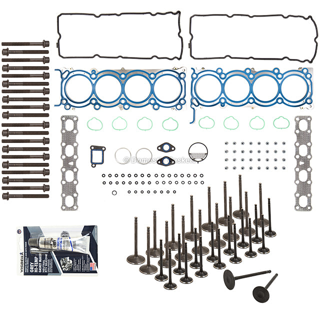 Head Gasket Set Intake Exhaust Valves Fits 04-09 Infiniti Nissan 5.6L VK56DE. This head gasket set with intake and exhaust valves is just what you need to keep your car in good running order. The head gasket set with intake and exhaust valves that you will receive in this kit are high quality gaskets and intake and exhaust valves that the dealers and rebuilding shops use everyday. So do not settle for lesser quality parts when it comes to engine repair. These gaskets and intake and exhaust valves are designed for the professional installer. It does not come with any installation instructions. If you do not have a service manual, please consult a professional mechanic prior to installing this head gasket set with intake and exhaust valves.