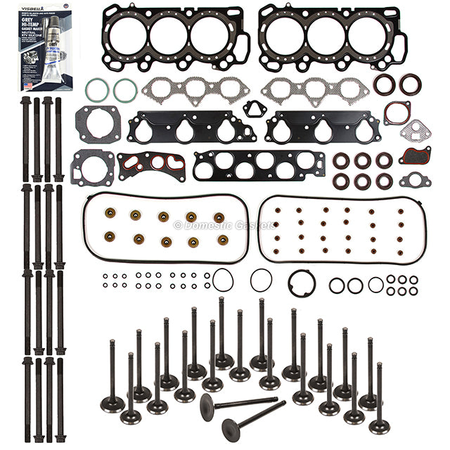 Head Gasket Set Intake Exhaust Valves Fits 1999 Acura TL V6 3.2 SOHC 24V J32A1. This head gasket set with intake and exhaust valves is just what you need to keep your car in good running order. The head gasket set with intake and exhaust valves that you will receive in this kit are high quality gaskets and intake and exhaust valves that the dealers and rebuilding shops use everyday. So do not settle for lesser quality parts when it comes to engine repair. These gaskets and intake and exhaust valves are designed for the professional installer. It does not come with any installation instructions. If you do not have a service manual, please consult a professional mechanic prior to installing this head gasket set with intake and exhaust valves.