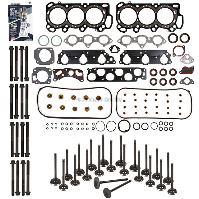 Head Gasket Set Intake Exhaust Valves Fits 99-01 Honda Odyssey 3.5 SOHC 24V. This head gasket set with intake and exhaust valves is just what you need to keep your car in good running order. The head gasket set with intake and exhaust valves that you will receive in this kit are high quality gaskets and intake and exhaust valves that the dealers and rebuilding shops use everyday. So do not settle for lesser quality parts when it comes to engine repair. These gaskets and intake and exhaust valves are designed for the professional installer. It does not come with any installation instructions. If you do not have a service manual, please consult a professional mechanic prior to installing this head gasket set with intake and exhaust valves.