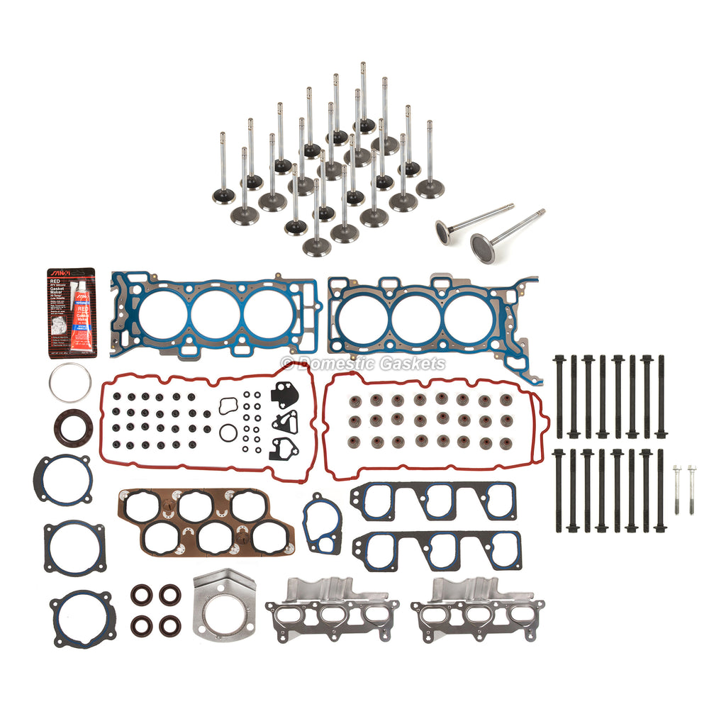 Head Gasket Set Intake Exhaust Valves Fit 07-11 Chevrolet Pontiac Saturn G6 3.6. This head gasket set with intake and exhaust valves is just what you need to keep your car in good running order. The head gasket set with intake and exhaust valves that you will receive in this kit are high quality gaskets and intake and exhaust valves that the dealers and rebuilding shops use everyday. So do not settle for lesser quality parts when it comes to engine repair. These gaskets and intake and exhaust valves are designed for the professional installer. It does not come with any installation instructions. If you do not have a service manual, please consult a professional mechanic prior to installing this head gasket set with intake and exhaust valves.