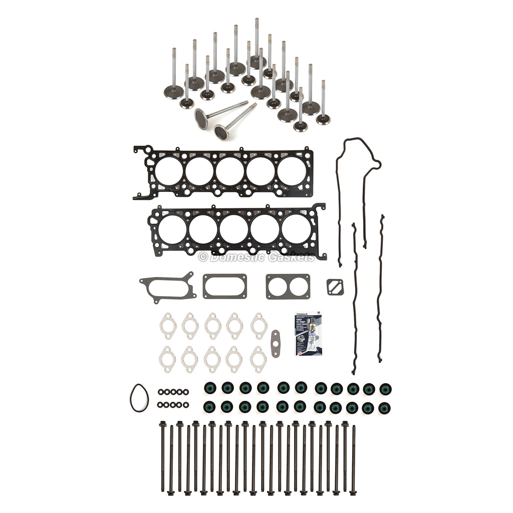 Head Gasket Set Intake Exhaust Valves Fit 97-02 Ford F250 F350 Excursion 6.8L. This head gasket set with intake and exhaust valves is just what you need to keep your car in good running order. The head gasket set with intake and exhaust valves that you will receive in this kit are high quality gaskets and intake and exhaust valves that the dealers and rebuilding shops use everyday. So do not settle for lesser quality parts when it comes to engine repair. These gaskets and intake and exhaust valves are designed for the professional installer. It does not come with any installation instructions. If you do not have a service manual, please consult a professional mechanic prior to installing this head gasket set with intake and exhaust valves.