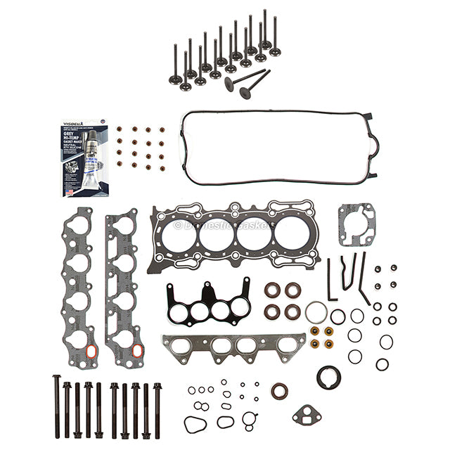 Graphite Head Gasket Set Intake Exhaust Valves Fit 98-99 Honda Acura Isuzu 2.3L. This head gasket set with intake and exhaust valves is just what you need to keep your car in good running order. The head gasket set with intake and exhaust valves that you will receive in this kit are high quality gaskets and intake and exhaust valves that the dealers and rebuilding shops use everyday. So do not settle for lesser quality parts when it comes to engine repair. These gaskets and intake and exhaust valves are designed for the professional installer. It does not come with any installation instructions. If you do not have a service manual, please consult a professional mechanic prior to installing this head gasket set with intake and exhaust valves.