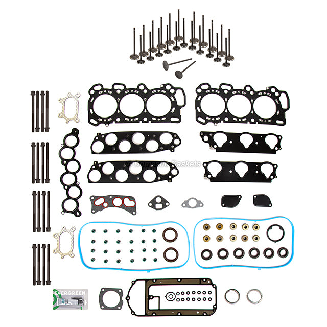 Head Gasket Set Intake Exhaust Valves Fit 06-08 Honda Ridgeline 3.5L. This head gasket set with intake and exhaust valves is just what you need to keep your car in good running order. The head gasket set with intake and exhaust valves that you will receive in this kit are high quality gaskets and intake and exhaust valves that the dealers and rebuilding shops use everyday. So do not settle for lesser quality parts when it comes to engine repair. These gaskets and intake and exhaust valves are designed for the professional installer. It does not come with any installation instructions. If you do not have a service manual, please consult a professional mechanic prior to installing this head gasket set with intake and exhaust valves.