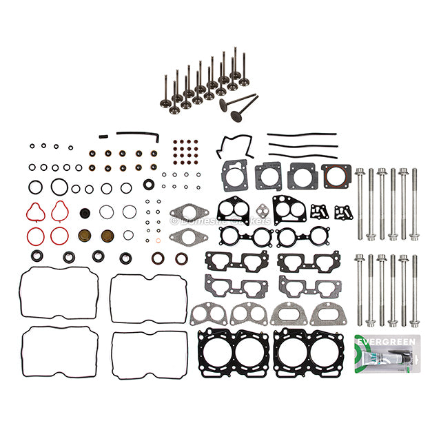 Head Gasket Set Intake Exhaust Valves Fit 06-07 Subaru Legacy Turbo 2.5L. This head gasket set with intake and exhaust valves is just what you need to keep your car in good running order. The head gasket set with intake and exhaust valves that you will receive in this kit are high quality gaskets and intake and exhaust valves that the dealers and rebuilding shops use everyday. So do not settle for lesser quality parts when it comes to engine repair. These gaskets and intake and exhaust valves are designed for the professional installer. It does not come with any installation instructions. If you do not have a service manual, please consult a professional mechanic prior to installing this head gasket set with intake and exhaust valves.