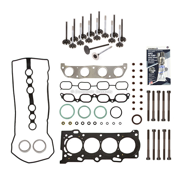 Head Gasket Set Intake Exhaust Valves Fit 98-05 Toyota Chevrolet 1.8L DOHC 1ZZFE. This head gasket set with intake and exhaust valves is just what you need to keep your car in good running order. The head gasket set with intake and exhaust valves that you will receive in this kit are high quality gaskets and intake and exhaust valves that the dealers and rebuilding shops use everyday. So do not settle for lesser quality parts when it comes to engine repair. These gaskets and intake and exhaust valves are designed for the professional installer. It does not come with any installation instructions. If you do not have a service manual, please consult a professional mechanic prior to installing this head gasket set with intake and exhaust valves.
