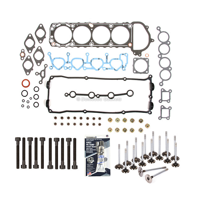 Head Gasket Set Intake Exhaust Valves Fit 95-98 Nissan 240SX 2.4L DOHC KA24DE. This head gasket set with intake and exhaust valves is just what you need to keep your car in good running order. The head gasket set with intake and exhaust valves that you will receive in this kit are high quality gaskets and intake and exhaust valves that the dealers and rebuilding shops use everyday. So do not settle for lesser quality parts when it comes to engine repair. These gaskets and intake and exhaust valves are designed for the professional installer. It does not come with any installation instructions. If you do not have a service manual, please consult a professional mechanic prior to installing this head gasket set with intake and exhaust valves.