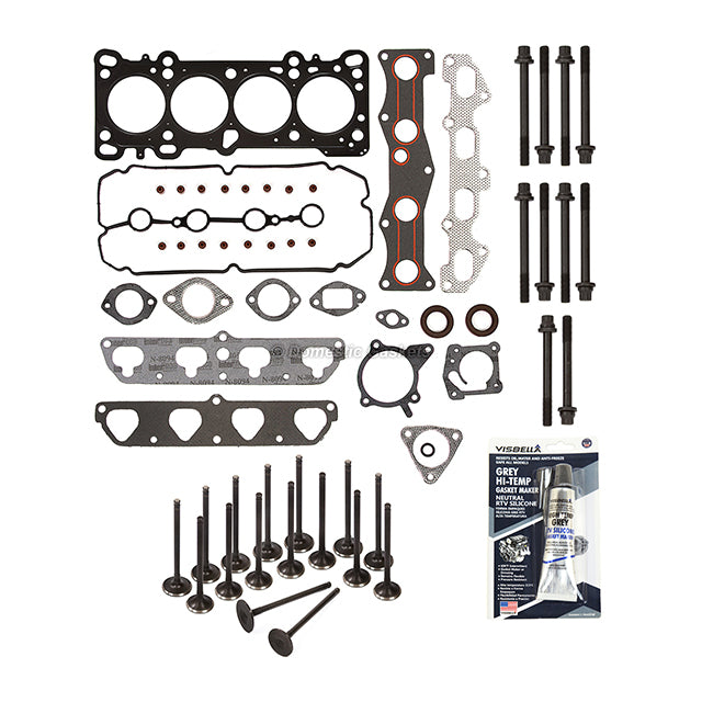 Head Gasket Set Intake Exhaust Valves Fit 03-05 Kia Rio 1.6L DOHC A6D. This head gasket set with intake and exhaust valves is just what you need to keep your car in good running order. The head gasket set with intake and exhaust valves that you will receive in this kit are high quality gaskets and intake and exhaust valves that the dealers and rebuilding shops use everyday. So do not settle for lesser quality parts when it comes to engine repair. These gaskets and intake and exhaust valves are designed for the professional installer. It does not come with any installation instructions. If you do not have a service manual, please consult a professional mechanic prior to installing this head gasket set with intake and exhaust valves.