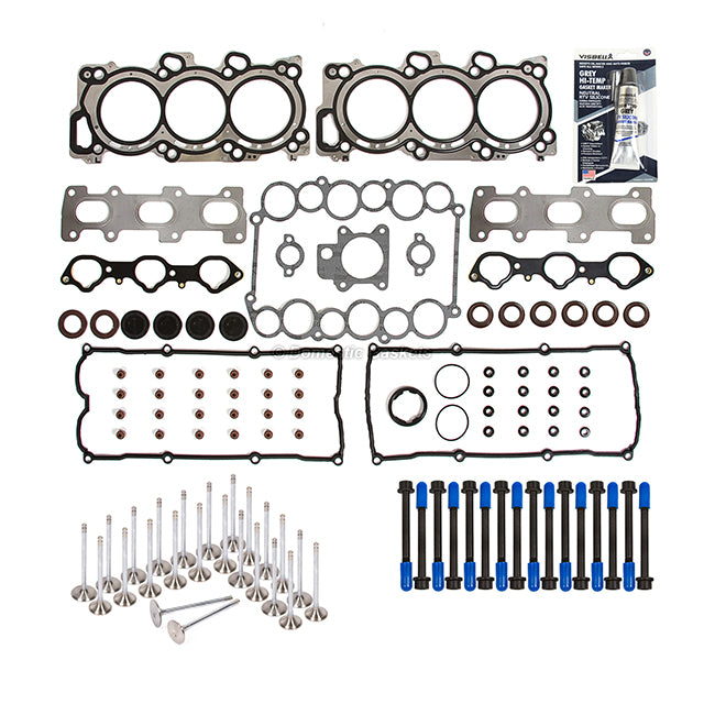 Head Gasket Set Intake Exhaust Valves Fit 98-02 Acura Honda Isuzu 3.2 6VE1 6VD1. This head gasket set with intake and exhaust valves is just what you need to keep your car in good running order. The head gasket set with intake and exhaust valves that you will receive in this kit are high quality gaskets and intake and exhaust valves that the dealers and rebuilding shops use everyday. So do not settle for lesser quality parts when it comes to engine repair. These gaskets and intake and exhaust valves are designed for the professional installer. It does not come with any installation instructions. If you do not have a service manual, please consult a professional mechanic prior to installing this head gasket set with intake and exhaust valves.