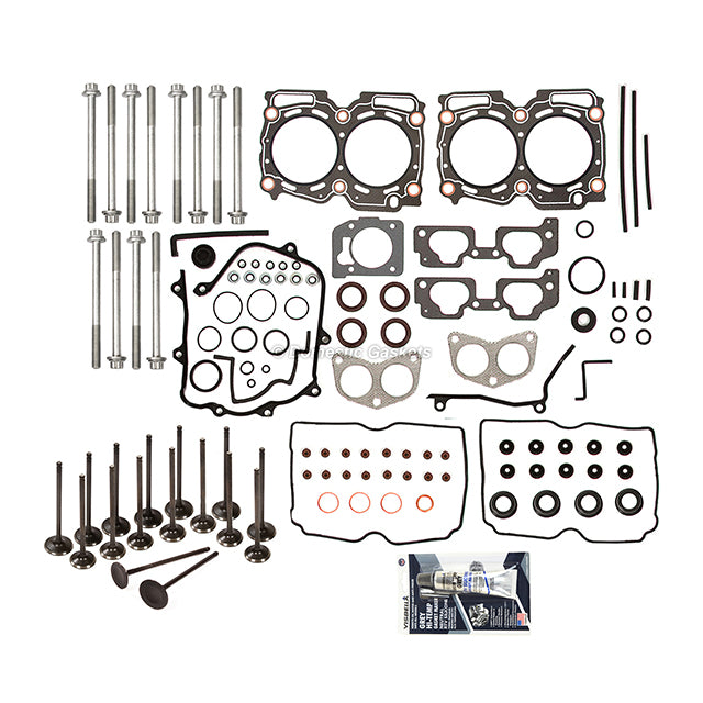 Fits 99-03 Subaru 2.5L SOHC Head Gasket Bolts Set Intake Exhaust Valves EJ25. This head gasket set with intake and exhaust valves is just what you need to keep your car in good running order. The head gasket set with intake and exhaust valves that you will receive in this kit are high quality gaskets and intake and exhaust valves that the dealers and rebuilding shops use everyday. So do not settle for lesser quality parts when it comes to engine repair. These gaskets and intake and exhaust valves are designed for the professional installer. It does not come with any installation instructions. If you do not have a service manual, please consult a professional mechanic prior to installing this head gasket set with intake and exhaust valves.
