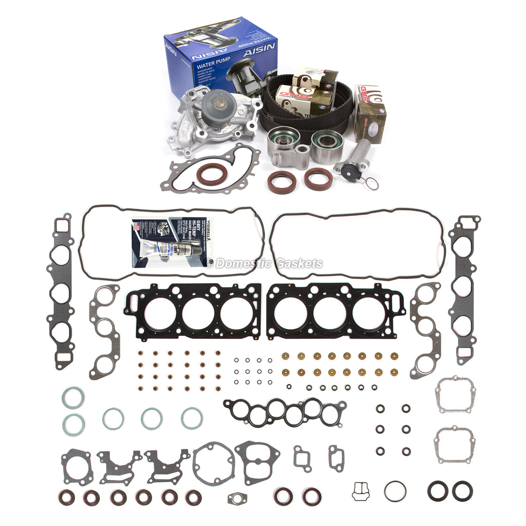 Head Gasket Set Timing Belt Kit AISIN Water Pump Fit 99-04 Toyota Lexus 1MZFE. This head set timing belt kit is just what you need to keep your car in good running order. The timing belt kit that you will receive is a high quality kit that the dealers and rebuilding shops use everyday. So do not settle for lesser quality parts when it comes to engine repair. These head set timing belt kits are designed for the professional installer. It does not come with any installation instructions. If you do not have a service manual, please consult a professional mechanic prior to installing this kit.