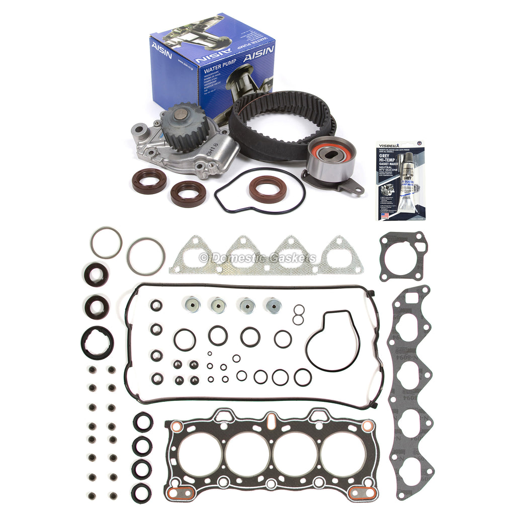 Head Gasket Set Timing Belt Kit AISIN Water Pump Fit 88-89 Acura Integra D16A1. This head set timing belt kit is just what you need to keep your car in good running order. The timing belt kit that you will receive is a high quality kit that the dealers and rebuilding shops use everyday. So do not settle for lesser quality parts when it comes to engine repair. These head set timing belt kits are designed for the professional installer. It does not come with any installation instructions. If you do not have a service manual, please consult a professional mechanic prior to installing this kit.