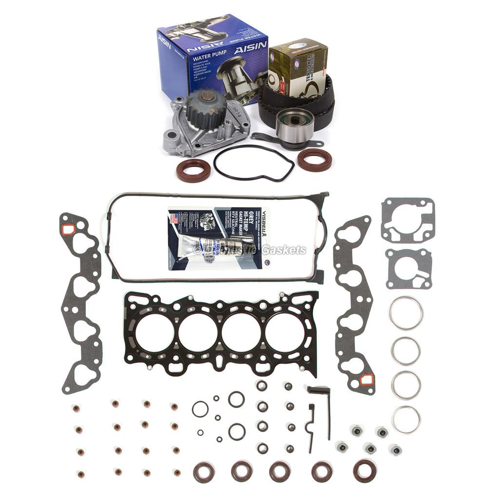 Head Gasket Set Timing Belt Kit AISIN Water Pump Fit 92-95 Honda SOHC 16V D15Z1. This head set timing belt kit is just what you need to keep your car in good running order. The timing belt kit that you will receive is a high quality kit that the dealers and rebuilding shops use everyday. So do not settle for lesser quality parts when it comes to engine repair. These head set timing belt kits are designed for the professional installer. It does not come with any installation instructions. If you do not have a service manual, please consult a professional mechanic prior to installing this kit.