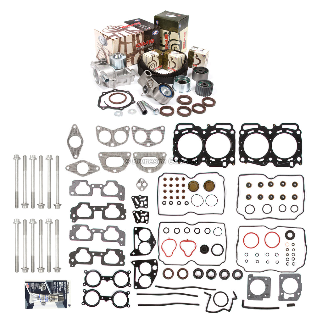 Head Gasket Set Timing Belt Kit Water Pump Fit 04-05 Subaru SOHC EJ25 VIN G. This head set timing belt kit is just what you need to keep your car in good running order. The timing belt kit that you will receive is a high quality kit that the dealers and rebuilding shops use everyday. So do not settle for lesser quality parts when it comes to engine repair. These head set timing belt kits are designed for the professional installer. It does not come with any installation instructions. If you do not have a service manual, please consult a professional mechanic prior to installing this kit.