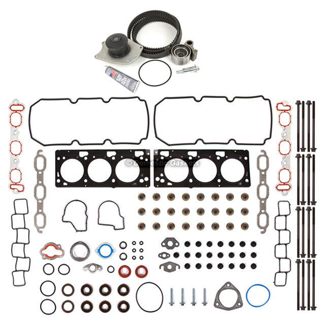 Head Gasket Set Timing Belt Kit Water Pump Fit 03-04 Chysler Dodge 3.5L SOHC. This head set timing belt kit is just what you need to keep your car in good running order. The timing belt kit that you will receive is a high quality kit that the dealers and rebuilding shops use everyday. So do not settle for lesser quality parts when it comes to engine repair. These head set timing belt kits are designed for the professional installer. It does not come with any installation instructions. If you do not have a service manual, please consult a professional mechanic prior to installing this kit.