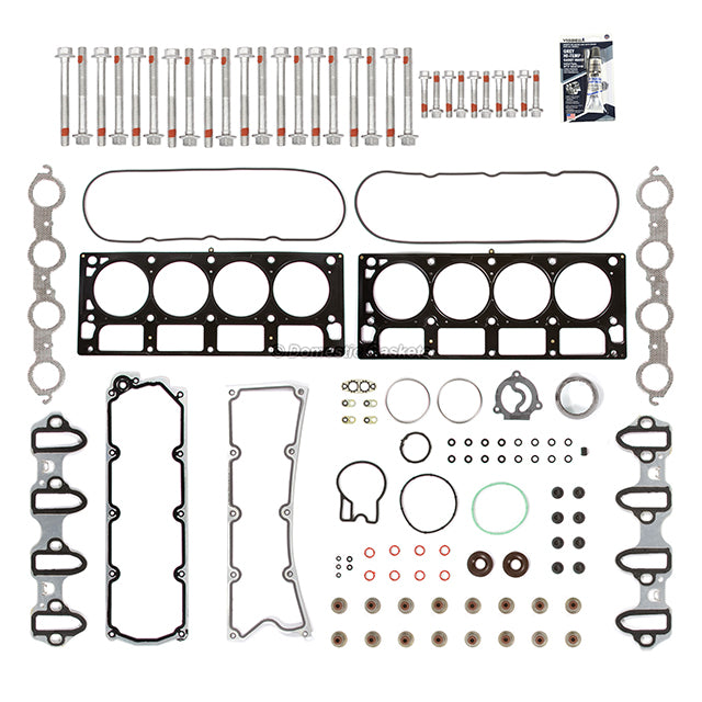 Head Gasket Bolts Set Fit 2004 Chevrolet Cadillac GMC Hummer 6.0 VIN N, U. This head gasket set and head bolts is just what you need to keep your car in good running order. The head gasket set and head bolts that you will receive in this kit is a high quality gasket that the dealers and rebuilding shops use everyday. So do not settle for lesser quality parts when it comes to engine repair. These head gasket set and head boltss are designed for the professional installer. It does not come with any installation instructions. If you do not have a service manual, please consult a professional mechanic prior to installing this head gasket set and head bolts.