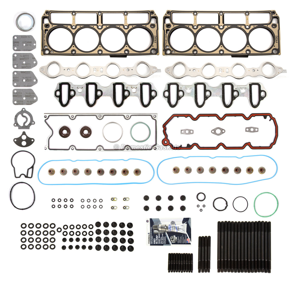 Head Gasket Set Head Studs Fit 02-04 Chevrolet Buick Cadillac GMC 4.8 & 5.3 OHV. This head gasket set and head bolts is just what you need to keep your car in good running order. The head gasket set and head bolts that you will receive in this kit is a high quality gasket that the dealers and rebuilding shops use everyday. So do not settle for lesser quality parts when it comes to engine repair. These head gasket set and head boltss are designed for the professional installer. It does not come with any installation instructions. If you do not have a service manual, please consult a professional mechanic prior to installing this head gasket set and head bolts.