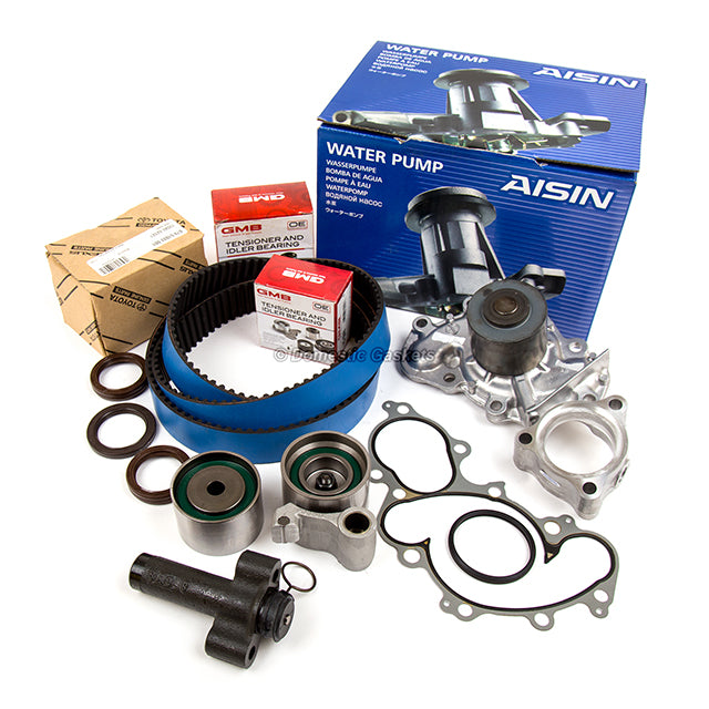 Timing Belt Kit Tensioner Water Pump w/o Outlet Pipe for 95-04 Toyota 5VZFE 3.4. This timing belt kit is just what you need to keep your car in good running order. The timing belt kit that you will receive is a high quality timing belt kit that the dealers and rebuilding shops use everyday. So do not settle for lesser quality parts when it comes to engine repair. These timing belt kits are designed for the professional installer. It does not come with any installation instructions. If you do not have a service manual, please consult a professional mechanic prior to installing this timing belt kit.