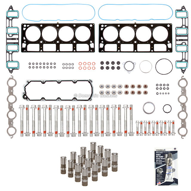 Head Gasket Set Bolts Lifters Fits 07-11 GMC Chevrolet 6.0 Cadillac 6.2 OHV AFM. This head gasket set with lifters is just what you need to keep your car in good running order. The head gasket set with lifters that you will receive in this kit are high quality gaskets and lifters that the dealers and rebuilding shops use everyday. So do not settle for lesser quality parts when it comes to engine repair. These gaskets and lifters are designed for the professional installer. It does not come with any installation instructions. If you do not have a service manual, please consult a professional mechanic prior to installing this head gasket set with lifters.