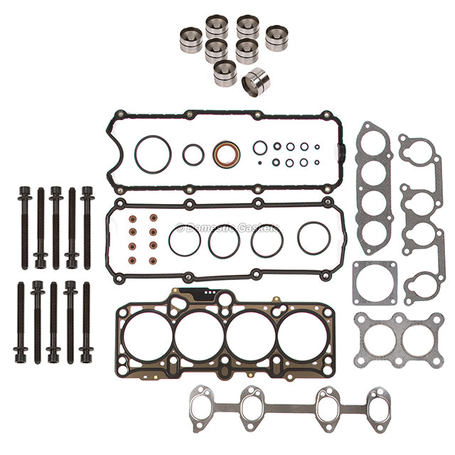 Head Gasket Set Bolts Lifters Fit 98-06 Volkswagen Jetta Beetle Golf 2.0 8V AGE. This head gasket set with lifters is just what you need to keep your car in good running order. The head gasket set with lifters that you will receive in this kit are high quality gaskets and lifters that the dealers and rebuilding shops use everyday. So do not settle for lesser quality parts when it comes to engine repair. These gaskets and lifters are designed for the professional installer. It does not come with any installation instructions. If you do not have a service manual, please consult a professional mechanic prior to installing this head gasket set with lifters.