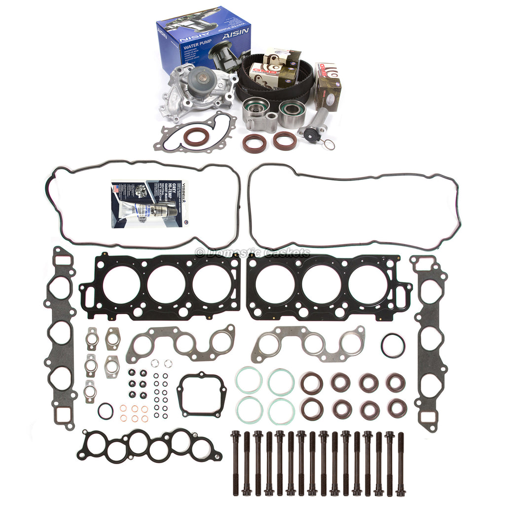 Head Gasket Set Timing Belt Kit Water Pump Fit 00-03 Toyota Camry 1MZFE. This head set timing belt kit is just what you need to keep your car in good running order. The timing belt kit that you will receive is a high quality kit that the dealers and rebuilding shops use everyday. So do not settle for lesser quality parts when it comes to engine repair. These head set timing belt kits are designed for the professional installer. It does not come with any installation instructions. If you do not have a service manual, please consult a professional mechanic prior to installing this kit.