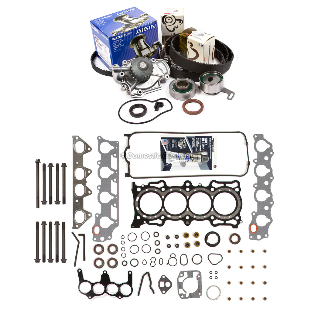 Head Gasket Set Timing Belt Kit Water Pump Fit 94-97 Acura Honda F22B1. This head set timing belt kit is just what you need to keep your car in good running order. The timing belt kit that you will receive is a high quality kit that the dealers and rebuilding shops use everyday. So do not settle for lesser quality parts when it comes to engine repair. These head set timing belt kits are designed for the professional installer. It does not come with any installation instructions. If you do not have a service manual, please consult a professional mechanic prior to installing this kit.