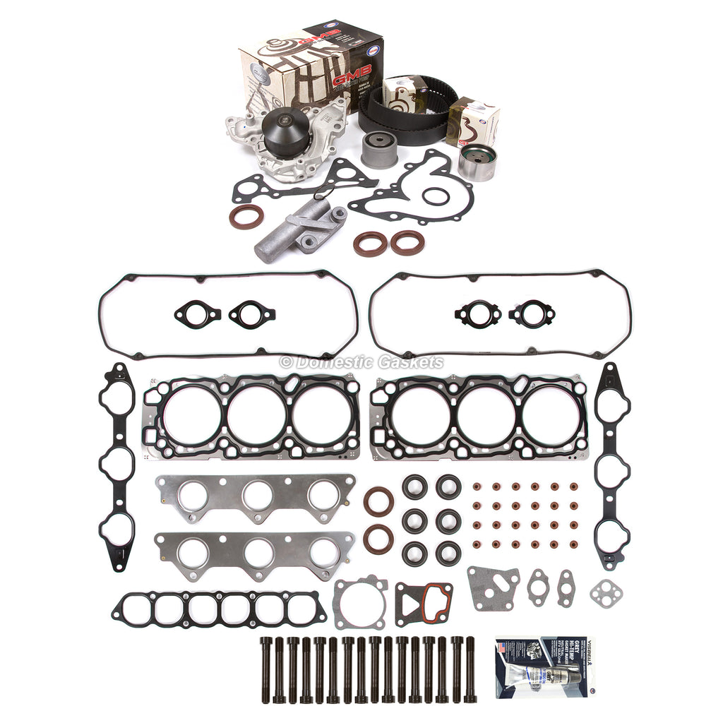Head Gasket Set Timing Belt Kit Water Pump Fit 97-04 Mitsubishi Montero 6G74. This head set timing belt kit is just what you need to keep your car in good running order. The timing belt kit that you will receive is a high quality kit that the dealers and rebuilding shops use everyday. So do not settle for lesser quality parts when it comes to engine repair. These head set timing belt kits are designed for the professional installer. It does not come with any installation instructions. If you do not have a service manual, please consult a professional mechanic prior to installing this kit.