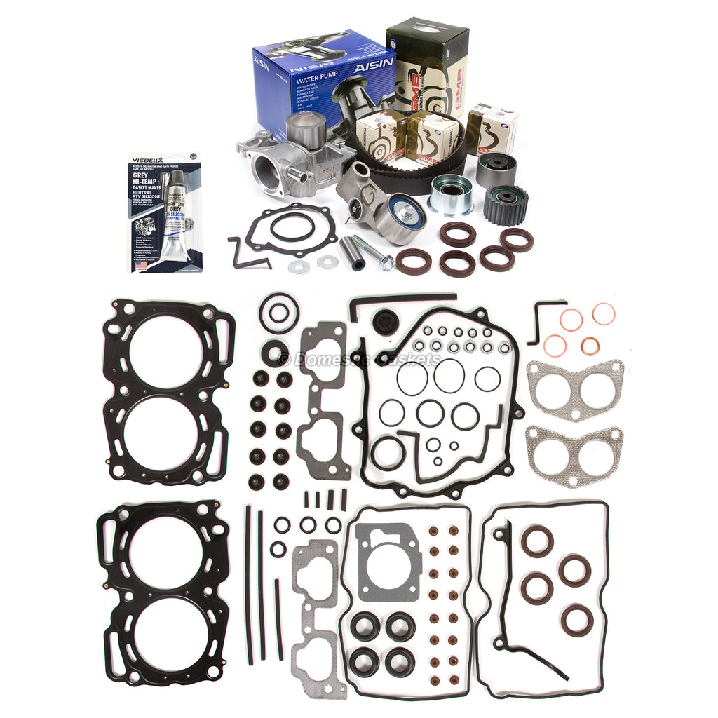 MLS Head Gasket Set Timing Belt Kit AISIN Water Pump Fit 00-03 Subaru EJ251/252. This head set timing belt kit is just what you need to keep your car in good running order. The timing belt kit that you will receive is a high quality kit that the dealers and rebuilding shops use everyday. So do not settle for lesser quality parts when it comes to engine repair. These head set timing belt kits are designed for the professional installer. It does not come with any installation instructions. If you do not have a service manual, please consult a professional mechanic prior to installing this kit.