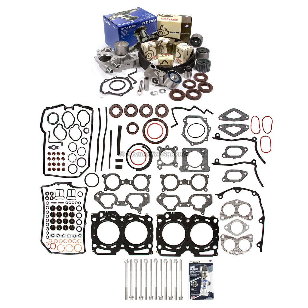 Head Gasket Set Timing Belt AISIN Kit Water Pump Fit 02-03 Subaru Impreza JDM. This head set timing belt kit is just what you need to keep your car in good running order. The timing belt kit that you will receive is a high quality kit that the dealers and rebuilding shops use everyday. So do not settle for lesser quality parts when it comes to engine repair. These head set timing belt kits are designed for the professional installer. It does not come with any installation instructions. If you do not have a service manual, please consult a professional mechanic prior to installing this kit.