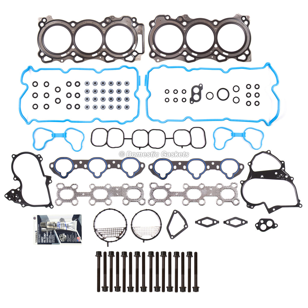 Head Gasket Set Head Bolts Fit 09-14 Maxima Murano Quest Nissan Altima VQ35DE. This head gasket set and head bolts is just what you need to keep your car in good running order. The head gasket set and head bolts that you will receive in this kit is a high quality gasket that the dealers and rebuilding shops use everyday. So do not settle for lesser quality parts when it comes to engine repair. These head gasket set and head boltss are designed for the professional installer. It does not come with any installation instructions. If you do not have a service manual, please consult a professional mechanic prior to installing this head gasket set and head bolts.