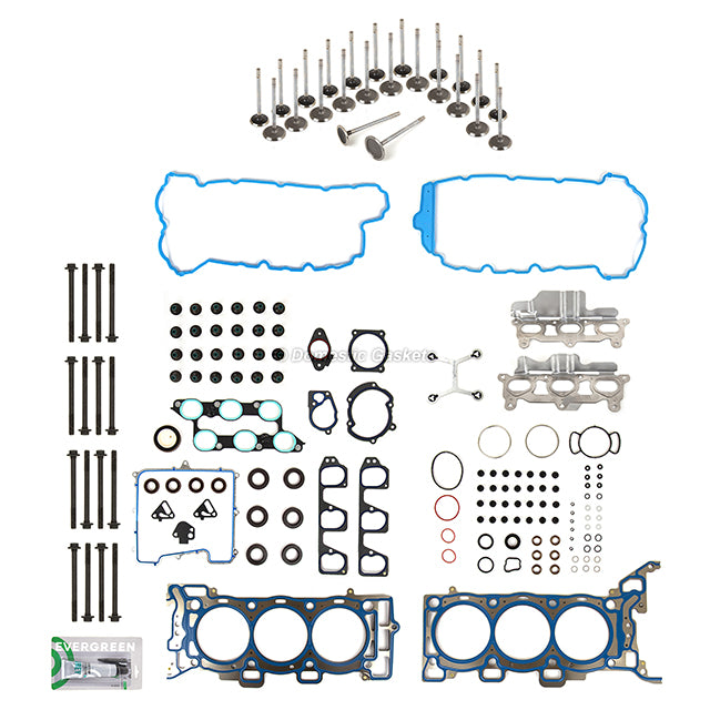 Head Gasket Set Intake Exhaust Valves Fit 09-11 Buick Cadillac Chevrolet 3.6L. This head gasket set with intake and exhaust valves is just what you need to keep your car in good running order. The head gasket set with intake and exhaust valves that you will receive in this kit are high quality gaskets and intake and exhaust valves that the dealers and rebuilding shops use everyday. So do not settle for lesser quality parts when it comes to engine repair. These gaskets and intake and exhaust valves are designed for the professional installer. It does not come with any installation instructions. If you do not have a service manual, please consult a professional mechanic prior to installing this head gasket set with intake and exhaust valves.
