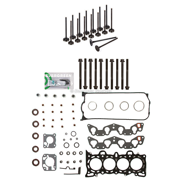 Head Gasket Set Intake Exhaust Valves Fit 92-95 Honda Del sol Civic 1.6L. This head gasket set with intake and exhaust valves is just what you need to keep your car in good running order. The head gasket set with intake and exhaust valves that you will receive in this kit are high quality gaskets and intake and exhaust valves that the dealers and rebuilding shops use everyday. So do not settle for lesser quality parts when it comes to engine repair. These gaskets and intake and exhaust valves are designed for the professional installer. It does not come with any installation instructions. If you do not have a service manual, please consult a professional mechanic prior to installing this head gasket set with intake and exhaust valves.