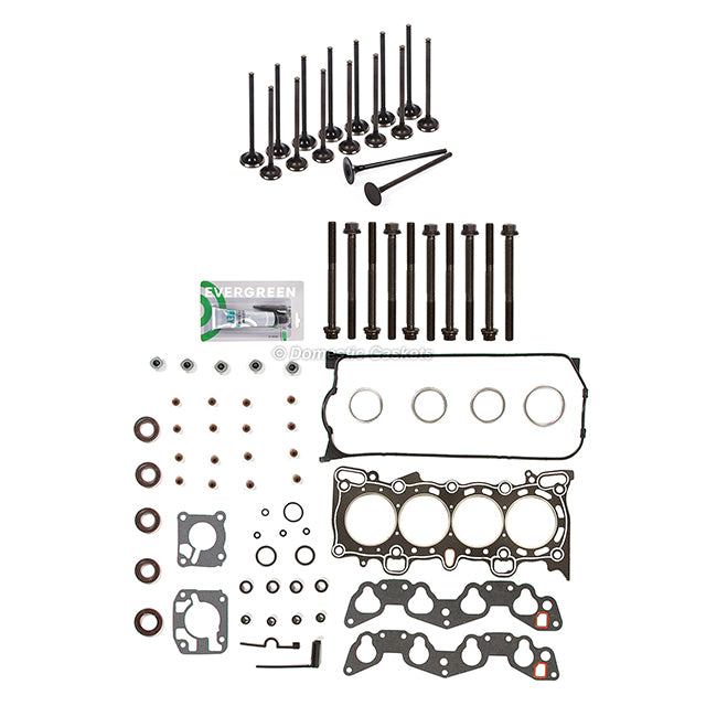 Graphite Head Gasket Set Intake Exhaust Valves Fit 92-95 Honda Civic Del sol. This head gasket set with intake and exhaust valves is just what you need to keep your car in good running order. The head gasket set with intake and exhaust valves that you will receive in this kit are high quality gaskets and intake and exhaust valves that the dealers and rebuilding shops use everyday. So do not settle for lesser quality parts when it comes to engine repair. These gaskets and intake and exhaust valves are designed for the professional installer. It does not come with any installation instructions. If you do not have a service manual, please consult a professional mechanic prior to installing this head gasket set with intake and exhaust valves.
