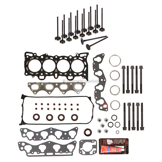 Head Gasket Set Intake Exhaust Valves Fit 96-00 Honda Civic 1.6L. This head gasket set with intake and exhaust valves is just what you need to keep your car in good running order. The head gasket set with intake and exhaust valves that you will receive in this kit are high quality gaskets and intake and exhaust valves that the dealers and rebuilding shops use everyday. So do not settle for lesser quality parts when it comes to engine repair. These gaskets and intake and exhaust valves are designed for the professional installer. It does not come with any installation instructions. If you do not have a service manual, please consult a professional mechanic prior to installing this head gasket set with intake and exhaust valves.