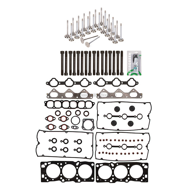 Head Gasket Set Intake Exhaust Valves Fit 02-06 Kia Hyundai 3.5L. This head gasket set with intake and exhaust valves is just what you need to keep your car in good running order. The head gasket set with intake and exhaust valves that you will receive in this kit are high quality gaskets and intake and exhaust valves that the dealers and rebuilding shops use everyday. So do not settle for lesser quality parts when it comes to engine repair. These gaskets and intake and exhaust valves are designed for the professional installer. It does not come with any installation instructions. If you do not have a service manual, please consult a professional mechanic prior to installing this head gasket set with intake and exhaust valves.