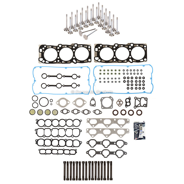 Head Gasket Set Intake Exhaust Valves Fit 02-06 Kia Sorento Sedona 3.5L. This head gasket set with intake and exhaust valves is just what you need to keep your car in good running order. The head gasket set with intake and exhaust valves that you will receive in this kit are high quality gaskets and intake and exhaust valves that the dealers and rebuilding shops use everyday. So do not settle for lesser quality parts when it comes to engine repair. These gaskets and intake and exhaust valves are designed for the professional installer. It does not come with any installation instructions. If you do not have a service manual, please consult a professional mechanic prior to installing this head gasket set with intake and exhaust valves.