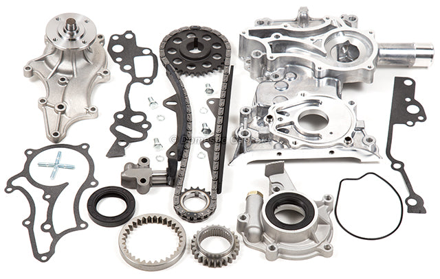 85-95 Toyota 2.4L Timing Chain Kit(Steel Guides)+Cover+Oil&Water Pump 22R 22RE