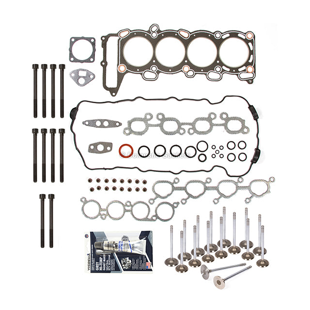 Head Gasket Set Intake Exhaust Valves Fit 91-94 Nissan Infiniti 2.0L SR20DE. This head gasket set with intake and exhaust valves is just what you need to keep your car in good running order. The head gasket set with intake and exhaust valves that you will receive in this kit are high quality gaskets and intake and exhaust valves that the dealers and rebuilding shops use everyday. So do not settle for lesser quality parts when it comes to engine repair. These gaskets and intake and exhaust valves are designed for the professional installer. It does not come with any installation instructions. If you do not have a service manual, please consult a professional mechanic prior to installing this head gasket set with intake and exhaust valves.