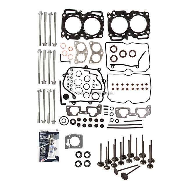 Fits 99-03 Subaru 2.5L SOHC MLS Head Gasket Bolts Set Intake Exhaust Valves EJ25. This head gasket set with intake and exhaust valves is just what you need to keep your car in good running order. The head gasket set with intake and exhaust valves that you will receive in this kit are high quality gaskets and intake and exhaust valves that the dealers and rebuilding shops use everyday. So do not settle for lesser quality parts when it comes to engine repair. These gaskets and intake and exhaust valves are designed for the professional installer. It does not come with any installation instructions. If you do not have a service manual, please consult a professional mechanic prior to installing this head gasket set with intake and exhaust valves.