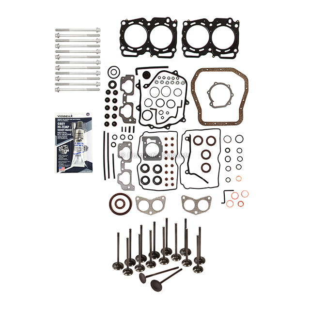 MLS Full Gasket Set Intake Exhaust Valves Fit 99-03 Subaru Saab 2.5L SOHC EJ251. This full gasket set with intake and exhaust valves is just what you need to keep your car in good running order. The full gasket set with intake and exhaust valves that you will receive in this kit are high quality gaskets and valves that the dealers and rebuilding shops use everyday. So do not settle for lesser quality parts when it comes to engine repair. These gaskets and intake and exhaust valves are designed for the professional installer. It does not come with any installation instructions. If you do not have a service manual, please consult a professional mechanic prior to installing this full gasket set with intake and exhaust valves.