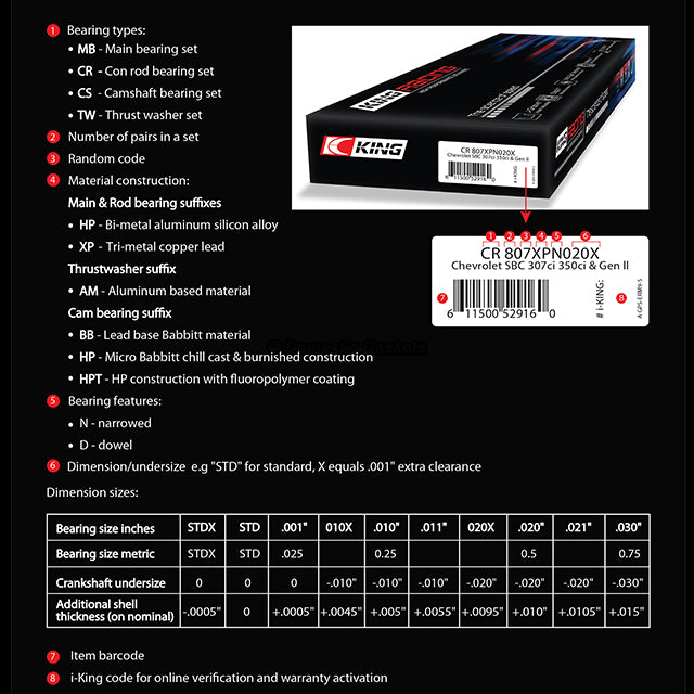 - 1 King Racing Rod Bearing Set (Sizes available: see option above)